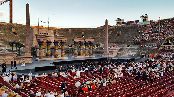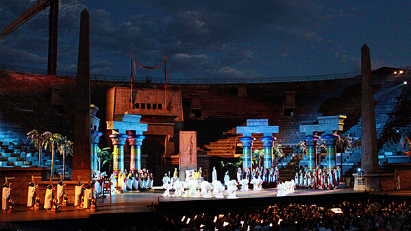 베로나 아레나 경기장에서 베로나 오페라 축제 관람